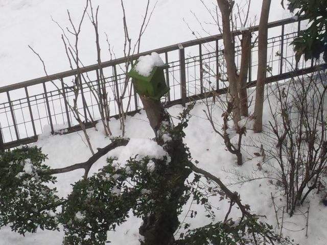 鳥小屋にも雪が積もりました
