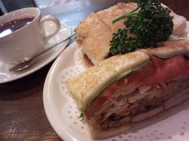 野菜入りカツサンドと紅茶のセット、900円くらい。