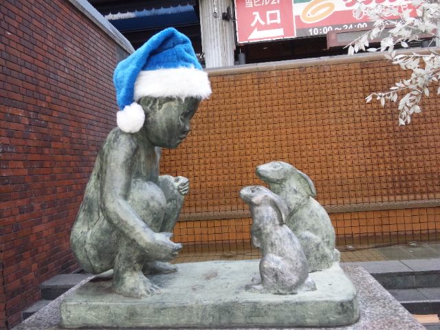 男の子と兎の像。