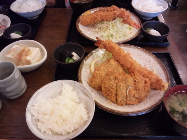 姉とあたしはミックスフライ定食。
